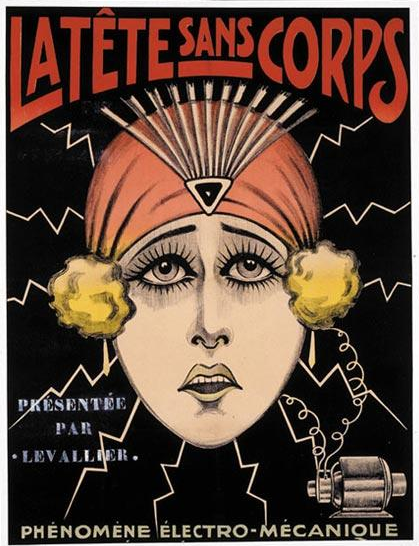 Portrait du magicien Levallier qui présentait à l’occasion des entresorts comme sa “Tête sans corps”.LEVALLIER. “La Tête sans corps Phénomène électro-mécanique”.