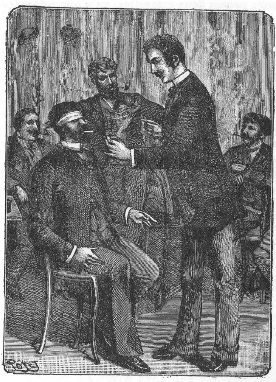 Choisissez parmi les assistants le fumeur le plus endurci; prenez deux cigarettes, qu’il humectera toutes deux avec ses lèvres; n’en allumez qu’une, et priez-le de fermer les yeux, ou, pour éviter toute supercherie de sa part, bandez-les-lui solidement. Approchez-vous maintenant de lui avec une cigarette dans chaque main, et faites-les lui fumer alternativement l’une et l’autre, pas trop fort, en interrompant la régularité autant que