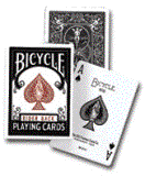 Bicycle : Marque de cartes à jouer américaine qui ont les faveurs des magiciens pour leurs propriétés et leur texture. Fabriqué à Cincinnatti. Même chose pour les jeux de prestidigitation. Les magiciens sont exigeants et choisissent leurs cartes en privilégiant la texture, la souplesse, le toucher et aussi le décor et les dessins. Si trois principaux cartiers dans le monde (U.S. Playing Cards Company, Carta Mundi et Fournier) se partagent les faveurs des magiciens, la plus réputée des cartes reste la fameuse « Bicycle Rider Back » de U.S. Playing Cards Company, quasiment inusable et dont le toucher et la souplesse surpassent tous les autres, selon les experts. Cette carte a connu tout au long de son histoire bon nombre de tarots représentant des cyclistes. Le premier date de 1887 et fut suivi par plus de 85 dessins différents selon l'évolution des moyens de locomotion.